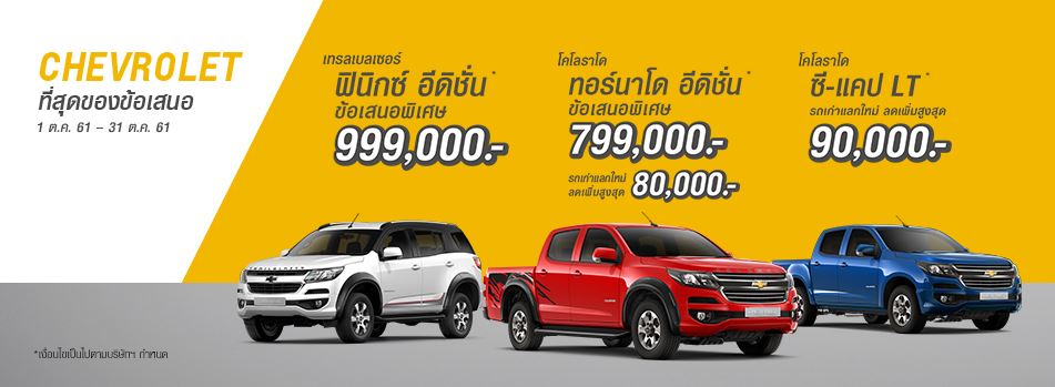 ที่สุด..กับข้อเสนอจากทางเชฟโรเลต ที่ลูกค้าเห็นแล้วต้องร้องว้าว ไม่ว่าจะเป็นราคาต่ำ ดาวน์น้อย ผ่อนสบาย ดอกเบี้ยถูก แถมลูกค้าที่มีรถเก่านำมาแลกซื้อรถใหม่รับเพิ่มสูงสุดอีก 80,000 บาท