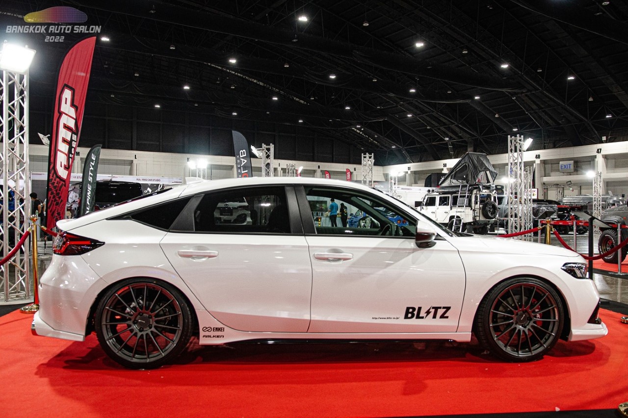 Honda CIVIC (BLITZ) ของสำนักแต่ง BLITZ ด้วยชุดแต่ง AERO SPEED R-Concept แต่งช่วงล่างใส่โช๊ค สตรัท ปรับไฟฟ้ารุ่น ZZ-R Spec DSC PLUS สามารถปรับความแข็งอ่อนของโช๊คได้แบบเรียลไทม์ ของ BLITZ เรียกได้ว่าเป็นที่สุดของ BLITZ ที่ผลิตสำหรับ Honda CIVIC และระบบเบรคของ BLITZ 4 POT จานเบรกแบบ 2 ชิ้น ขนาด 330 mm. มากับล้อขอบ 20 ENKEI RS05RR