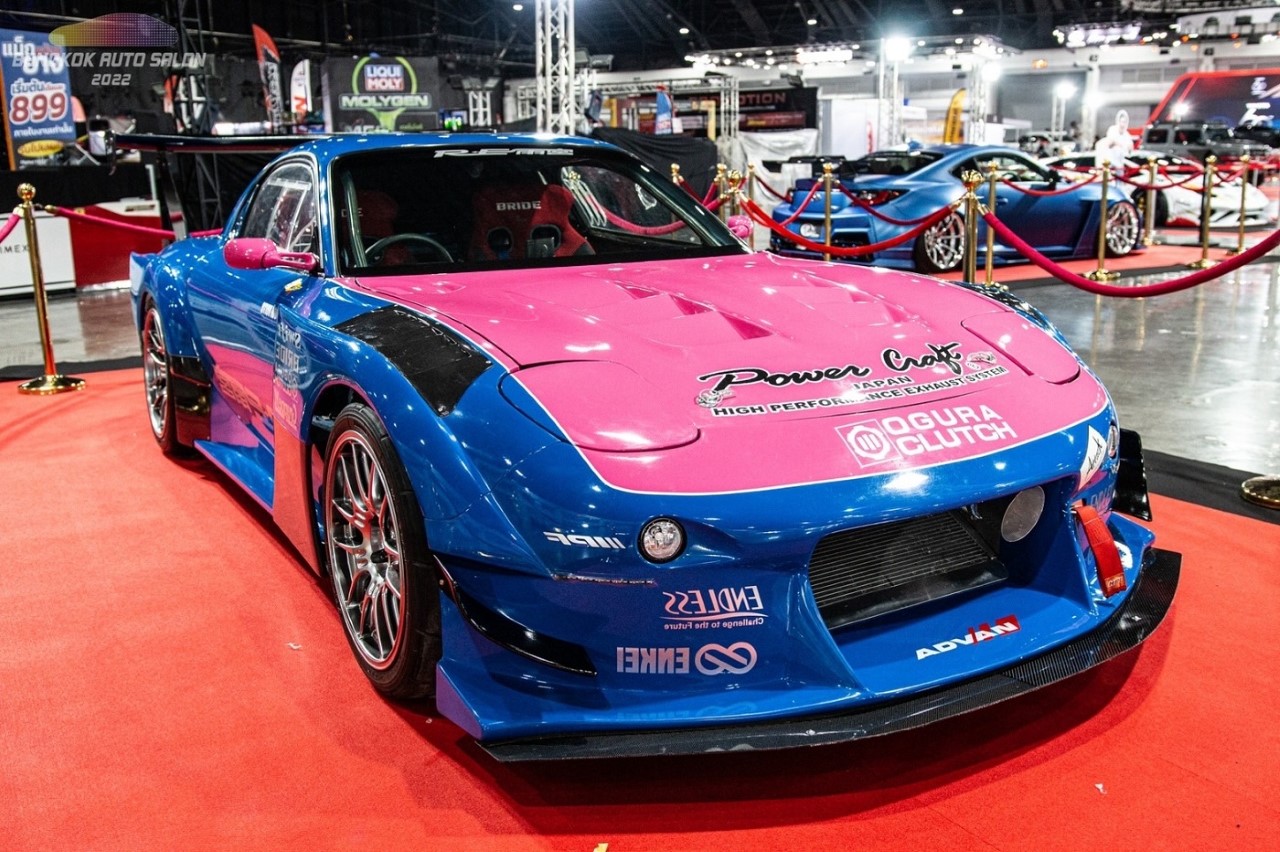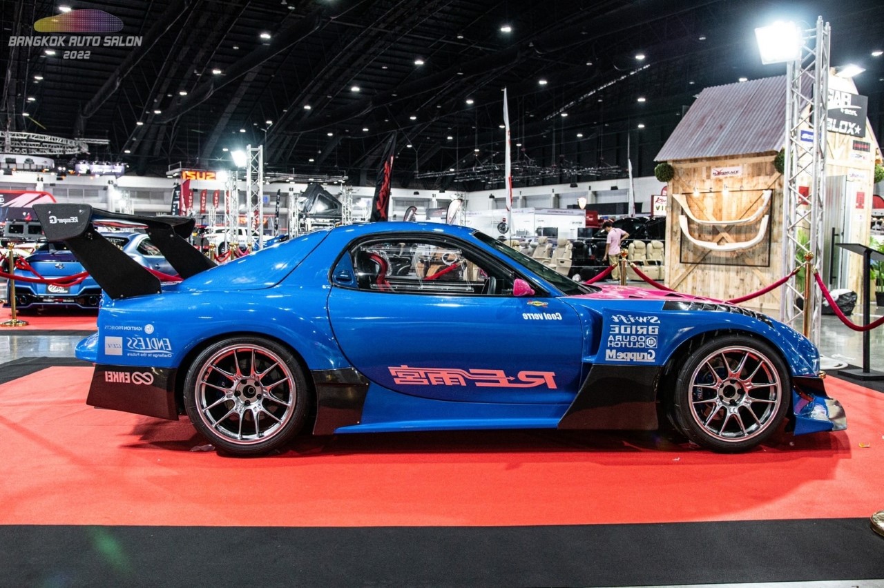 RE Amemiya เป็นชุดแต่ง RE Amemiya D1 ให้กำลังด้วยเครื่อง 20B หรือที่คนไทยเรียกกันว่าเครื่องโรตาลี่ ซึ่งคันนี้ไม่ใช่เครื่องเดิมที่มาจากโรงงาน( 13B) ที่จะมี 2 โรเตอร์ แต่คันนี้พ่วงมาด้วยเครื่อง 3 โรเตอร์หรือรหัส 20B ไม่มีระบบอัดอากาศ ซึ่งให้เสียงที่หวาน เป็นเครื่องที่เล็กแต่ให้กำลังแรงม้าสูง เพราะชิ้นส่วนในเครื่องมีน้อยกว่าเครื่องยนต์ปกติ ผ่านการปรับจูนให้เป็นรถดริฟท์ RE Amemiya ซึ่งเราอาจจะคุ้นชินกับชุดแต่ง RE SuperG รุ่นธรรมดา แต่คันนี้เป็นรุ่น D1 ที่ดัดแปลงเป็นรถดริฟท์เต็มระบบ ใช้ระบบเบรกของ ENDLESS หน้าหลัง ล้อขอบ 18 ของ ENKEI GTC02 ยาง YOKOHAMA ADVAN A050 และที่เราเห็นกันในเมืองไทยจะเป็นชุดแต่ง RE SUPER G ไม่ใช่รุ่น D1 ซึ่งเจ้าของสำนักนี้เป็น Mr.ISAMI AMEMIYA ซึ่งมีจุดเด่นของสำนักนี้คือ เน้นแต่งรถ RX7 และ RX8