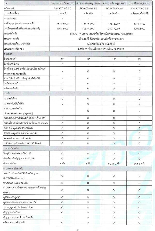 1. เบนซิน 2.0 skyactiv 154 แรงม้า @6,000 แรงบิด 195 n/m @ 4,000 ขับ 2 รุ่นนตัวล่าง ล้อ 17 ประมาณ 1,150,000