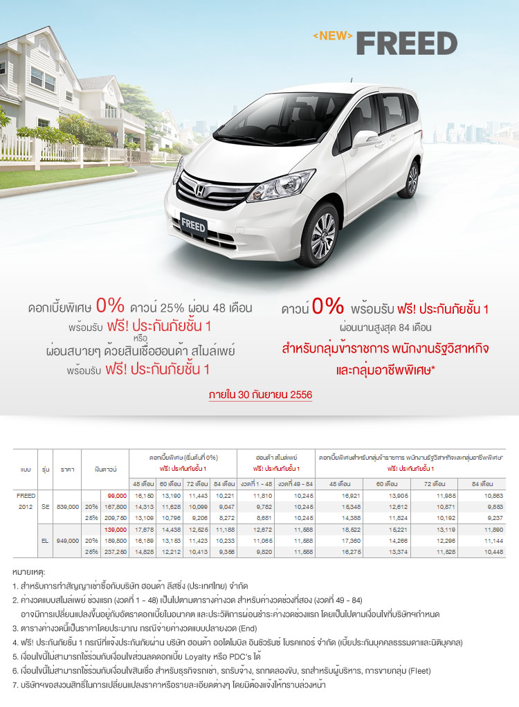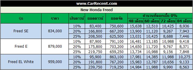 ตารางผ่อนดาวน์ All New Honda Freed (อาจมีการเปลี่ยนแปลงขึ้นอยู่กับโปรโมชั่น – แคมเปญที่ทางฮอนด้าจัด)