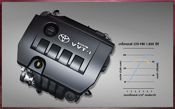 เครื่องยนต์ 2ZR-FBE 1.8L Dual VVT-i 4 สูบ 16 วาล์ว 1.8 ลิตร พร้อม ACIS (Acoustic Control Induction System) ช่วยเพิ่มแรงบิดให้ดีขึ้นในทุกระดับความเร็ว