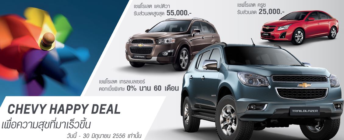 วันนี้ผมได้ไปเจอโปรโมชั่นพิเศษบวกกับที่เจอโฆษณาในทีวีสำหรับลูกค้าที่สนใจอยากจะได้รถเชฟโรเลตไม่ว่าจะเป็น เชฟโรเลตโซนิค เชฟโรเลตครูซ เชฟโรเลตแคปติวา เชฟโรเลตโคโลราโด และโดยเฉพาะเซฟโรเลตเทรลเบลเซอร์ ที่มีโปรโมชั่นซื้อรถภายในเดือนมิถุนายน 2556 นี้ผ่อนดอกเบี้ย 0% นาน 60 เดือน และส่วนรถอื่นๆอีกมากมาย ตามรายละเอียดที่ผมจะแจ้งให้เพื่อนได้ทราบกันครับ