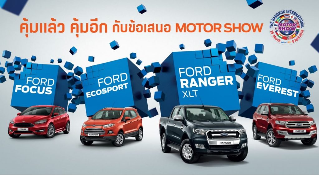 ใกล้เข้าสู่ช่วงงาน Thailand Motor Show 2017 ในเดือนมีนาคมนี้ฟอร์ดประเทศไทยได้จัดโปรโมชั่นสุดคุ้ม ข้อเสนอเดียวกับงาน ไทยแลนด์ มอเตอร์โชว์ 2018 ให้กับรถยนต์ฟอร์ดทุกรุ่นที่มีจำหน่ายในประเทศไทยตอนนี้ ซึ่งรายละเอียดในแต่ละรุ่นมีดังนี้