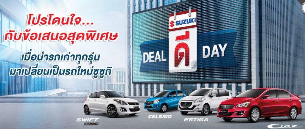 สิทธิพิเศษสำหรับลูกค้าที่จองรถ Suzuki รุ่นใดก็ได้วันนี้ ถึง 31 สิงหาคม 2560 นี้ึึึึึึึึึึึึึึึึึึึึึึึึึึึึึึึึึึึึึึึึึึึึึึึึึึึึึึึึึึึึึึึึึึึึ พบกับโปรโมชั่น Suzuki Deal ดี Day ที่ให้ข้อเสนอสุดคุ้มให้กับลูกค้า เช่น ดอกเบี้ยพิเศษ 0% ฟรีประกันชั้น 1 เป็นต้น โดยรายละเอียดของโปรโมชั่นในแต่ละรุ่นมีดังนี้